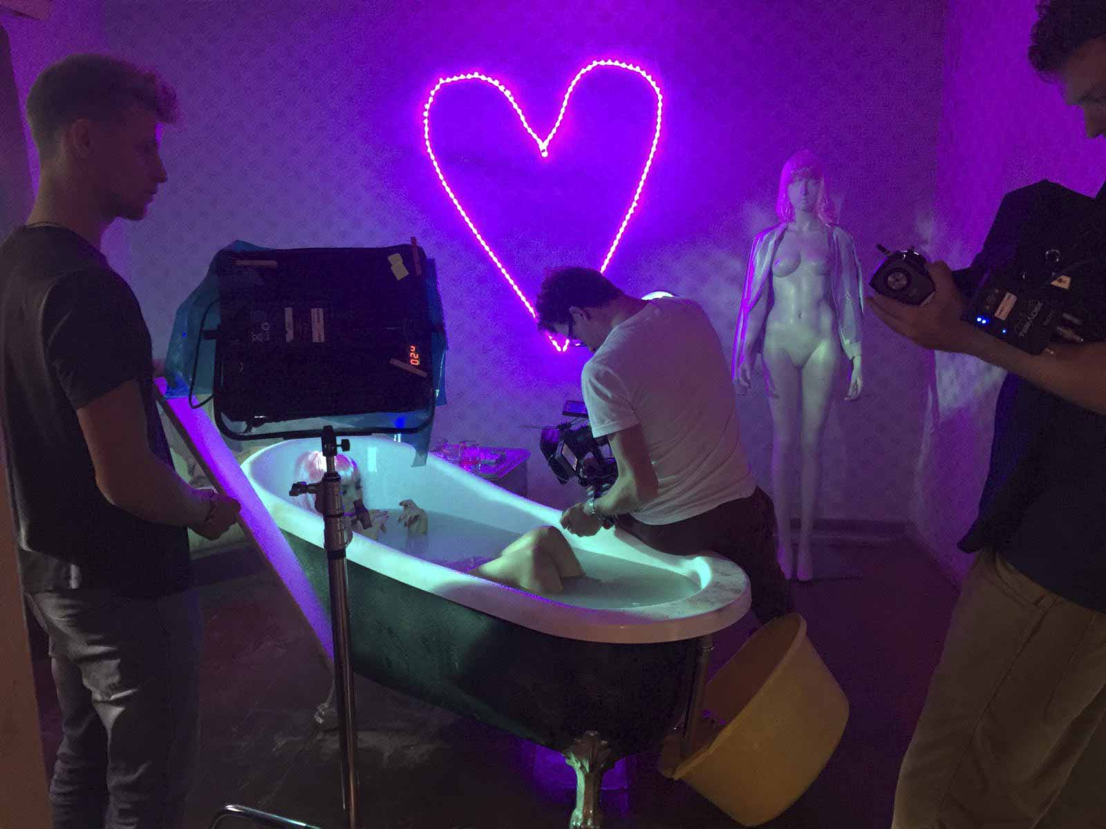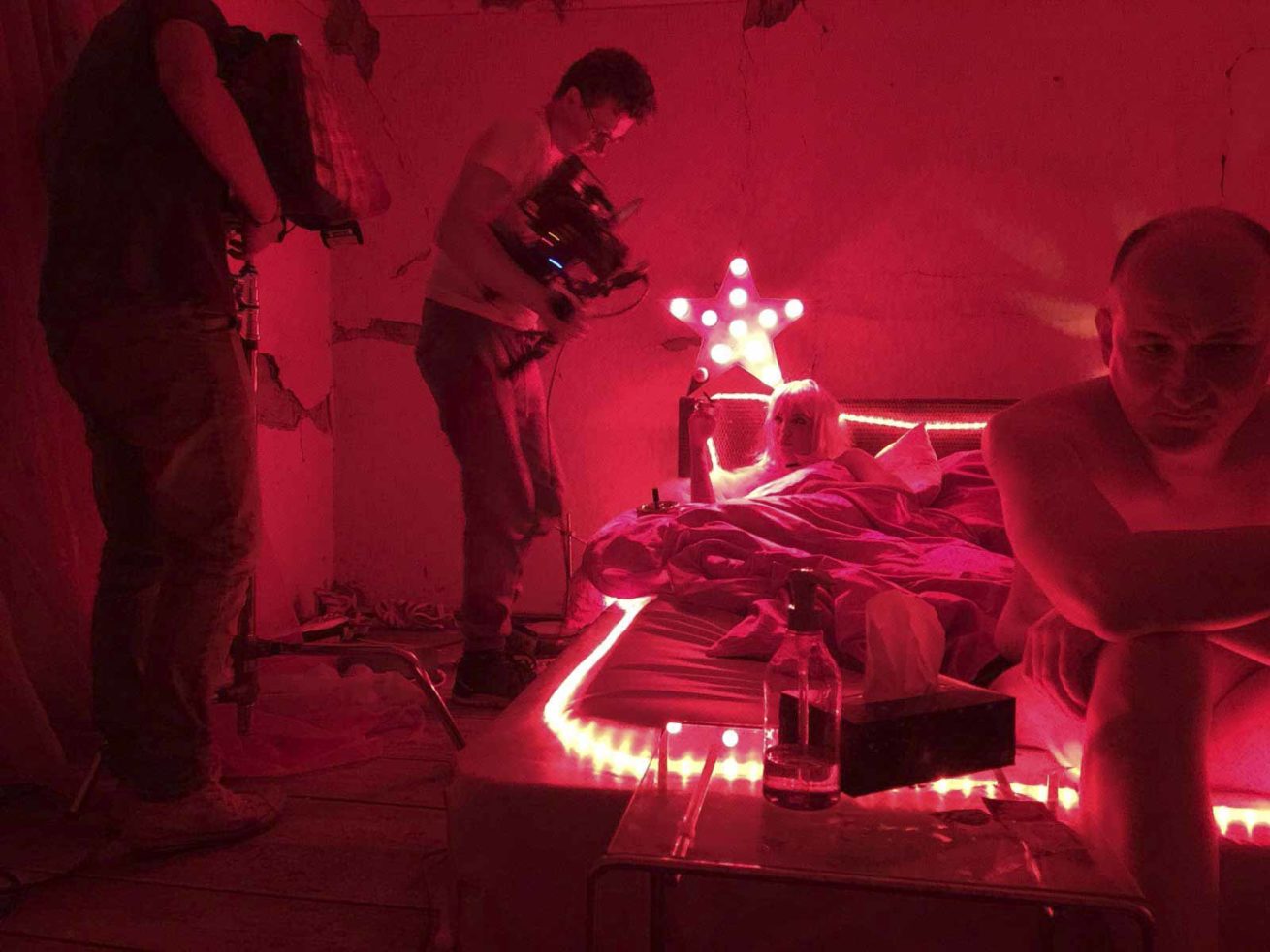2 Drehtage – 3 Clips – Alles easy – Wäre da nicht noch Diskussionsbedarf gewesen über die Drehbücher und die Drehbücher. Der Ehre und wahrscheinlich des Geldes wegen wurde dann doch gedreht. Ich war ziemlich fiebrig, also richtig schön krank. Das Schöne am Setleben ist dass man von allen Seiten betuddelt wird. Auch wenn es keine richtigen Drogen gab, wurde mir Aspirin Complex vorgestellt. Fortan bin ich auf Speed gewesen und damit auf dem Ruhepuls des Regisseurs. Wie gern würde ich mal eine Doku über Timon Modersohn drehen.